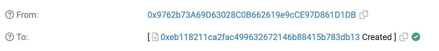 3. You can view the contract on Etherscan by clicking the message in the terminal. You an view the address of the created contract and the original contract in Etherscan.