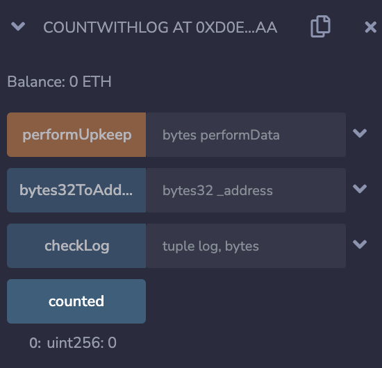 2. Under Deployed Contracts, expand CountWithLog. Click the count button to view the value of the count variable. It should be 0.