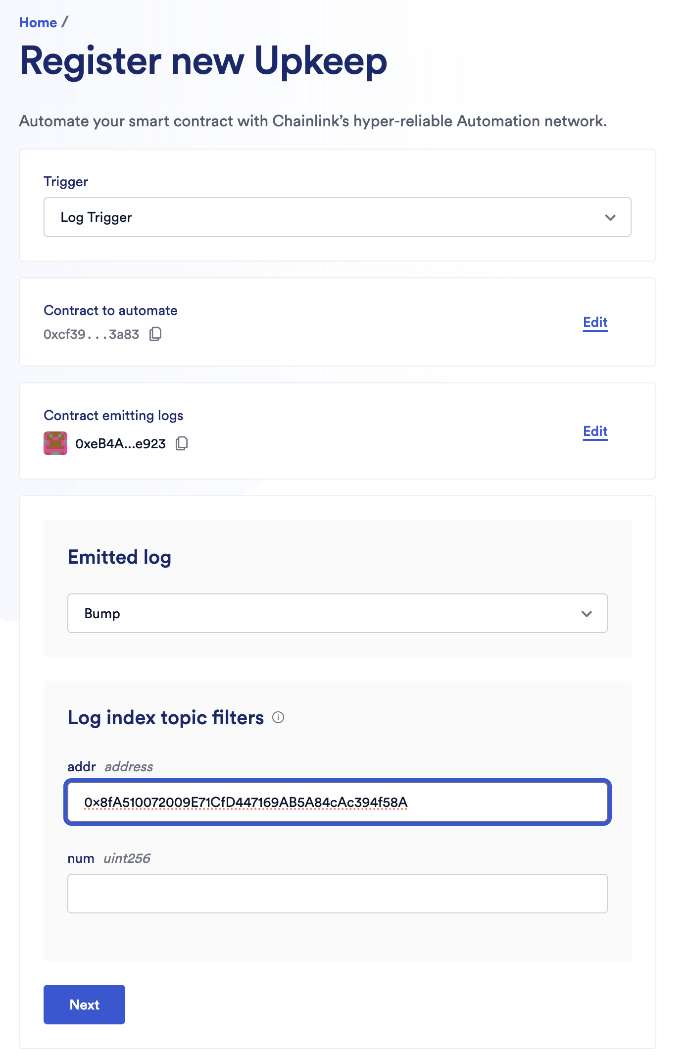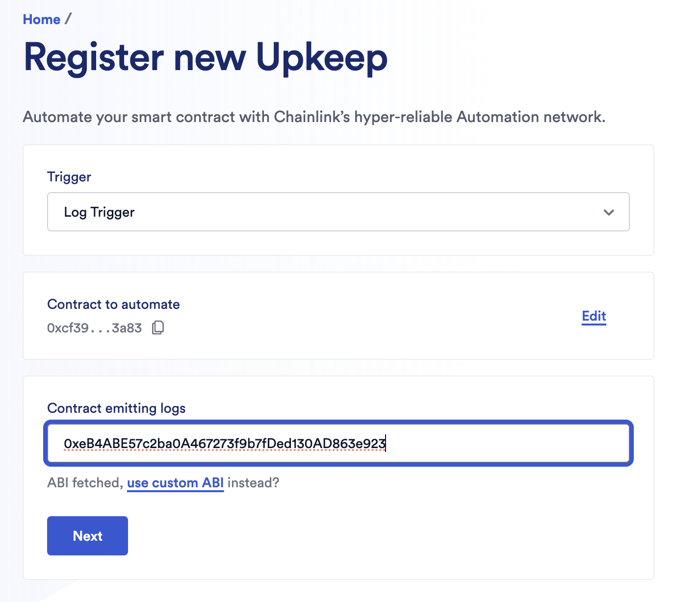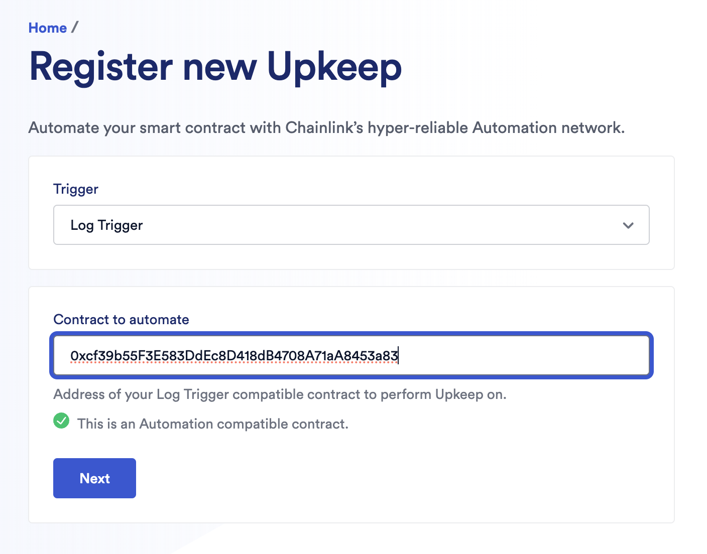 • Upkeep name: This will be visible in the Chainlink Automation app.